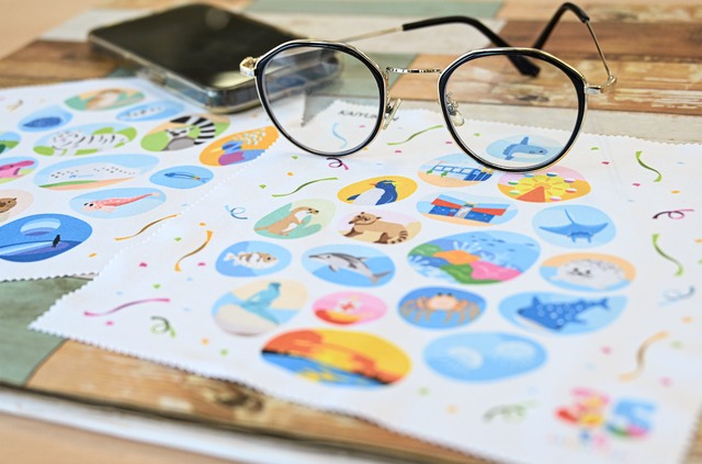 片面には海遊館35thのデザイン、もう片面にはニフレル10thのデザインの華やかなデザインとなっており、眼鏡やスマートフォンなどの画面をふくのにちょうどよいサイズのクロスです。